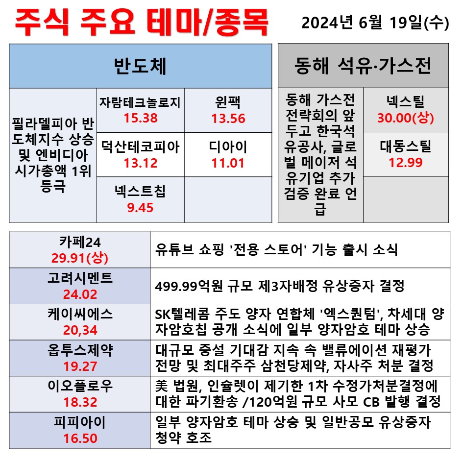 6월 19일(화\수) 일일 동향 반도체 동해 석유·가스전 #테마 #상한가 #주식 #투자