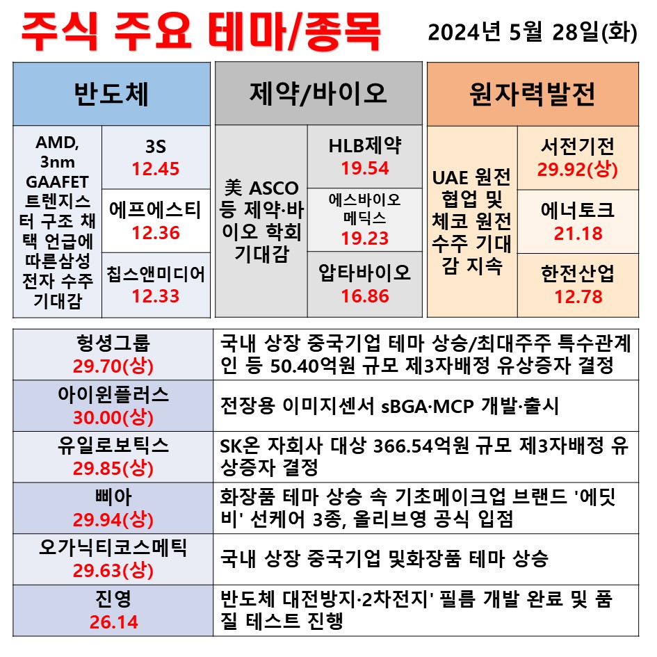 5월 28일 일일 동향 반도체 제약/바이오 원자력발전 #테마 #상한가 #주식 #투자