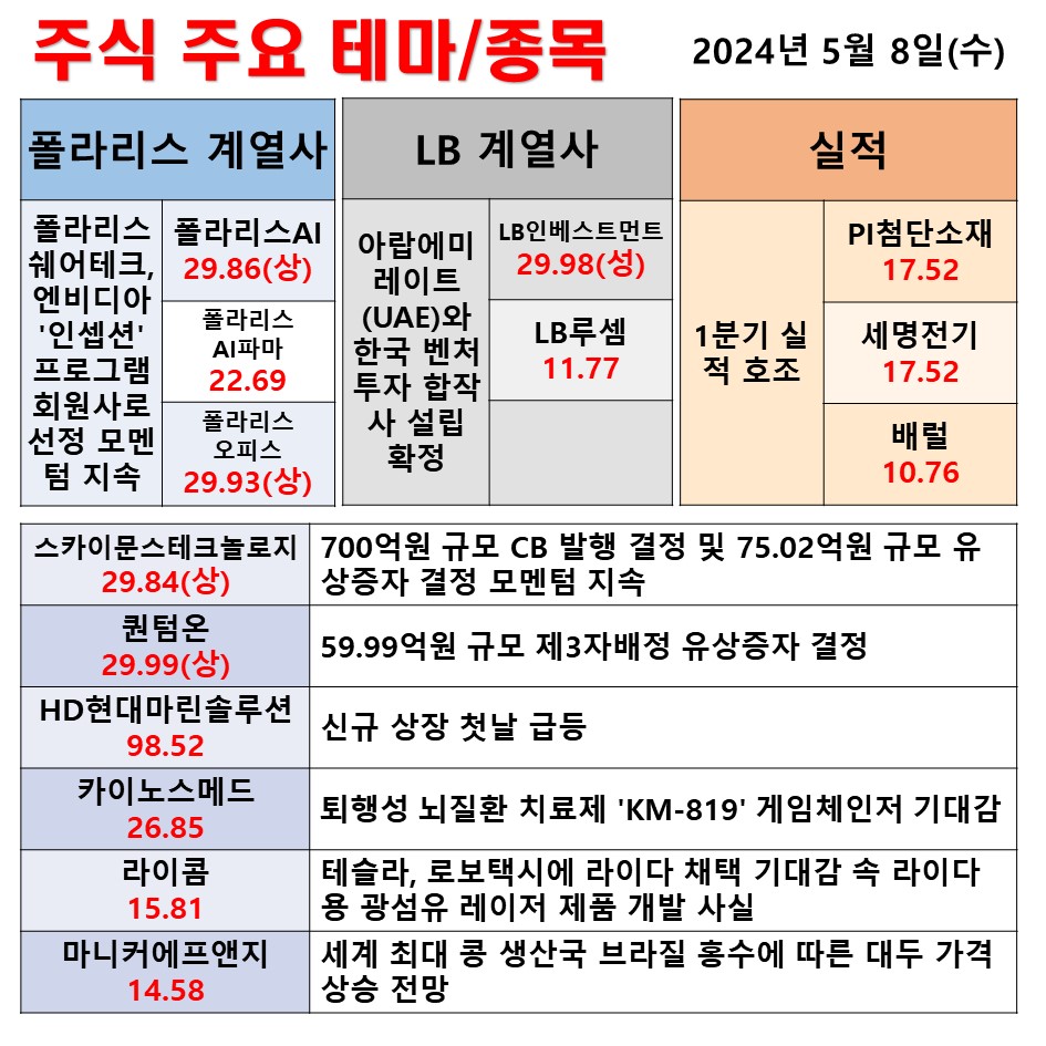 5월 8일 일일 동향 폴라리스 계열사 LB계열사 실적주 #테마 #상한가 #주식 #투자
