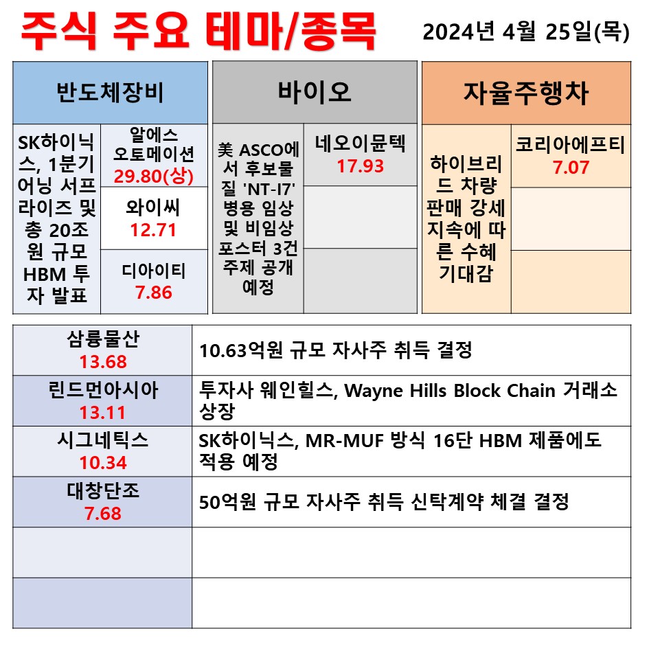 4월 25일 일일동향 반도체장비 바이오 자율주행차 #테마 #상한가 #주식 #투자