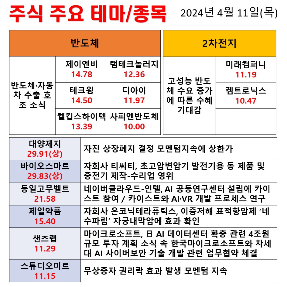 2024년 4월 11일 일간 동향 반도체 유리기판 #테마 #상한가 #주식 #투자