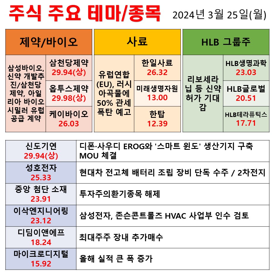 240325 일간동향 제약/바이오 사료 HLB그룹주