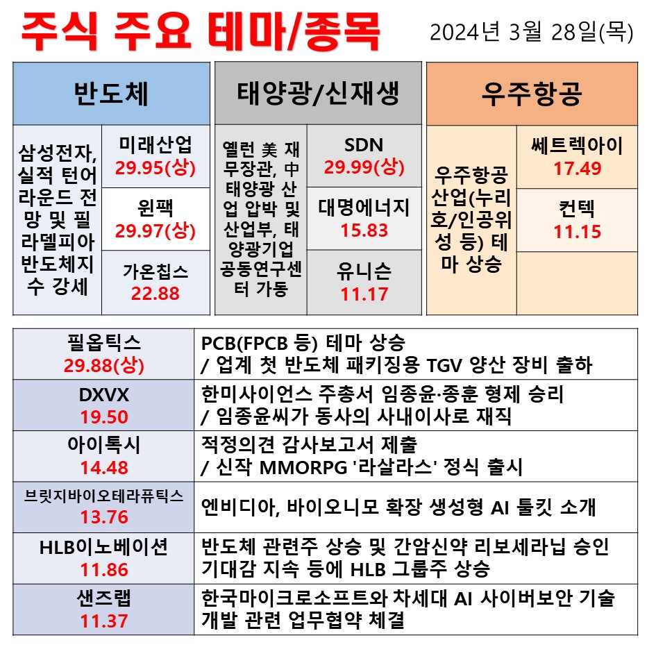 240328 반도체 신재생 / 태양광 우주항공