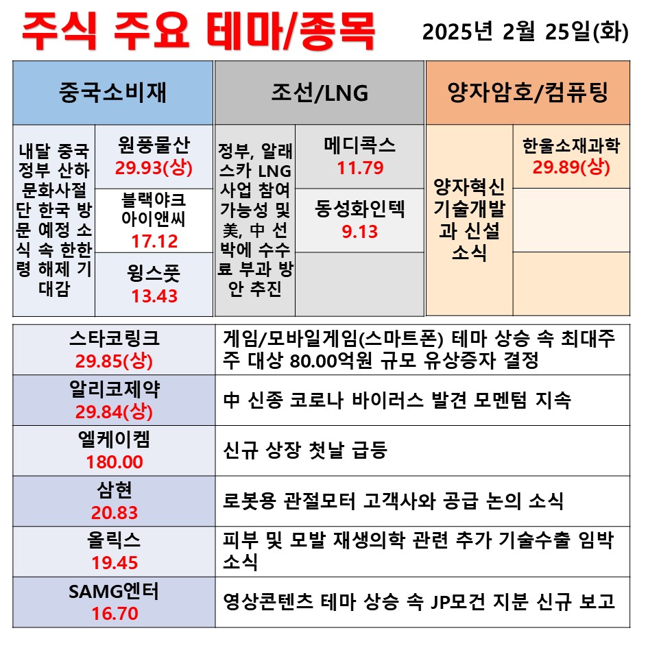 2월 25일(화) 일일 동향 중국소비재 조선/LNG 양자암호/컴퓨팅 #테마 #상한가 #주식 #투자