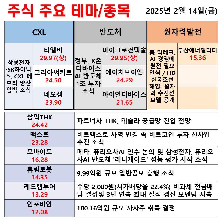 2월 14일(금) 일일 동향 CXL 반도체 원자력발전 #테마 #상한가 #주식 #투자