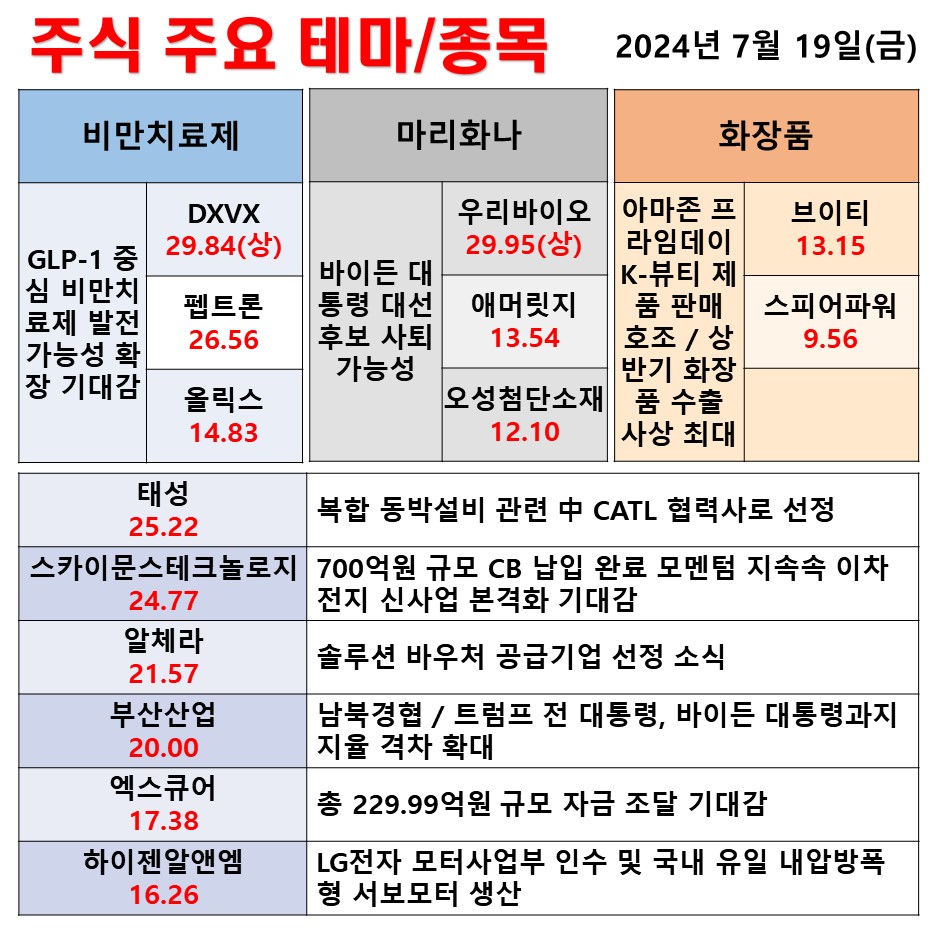 7월 19일(금) 일일 동향 비만치료제 마리화나 화장품 #테마 #상한가 #주식 #투자